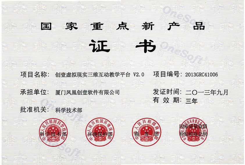 國家重點(diǎn)新產(chǎn)品證書(shū)