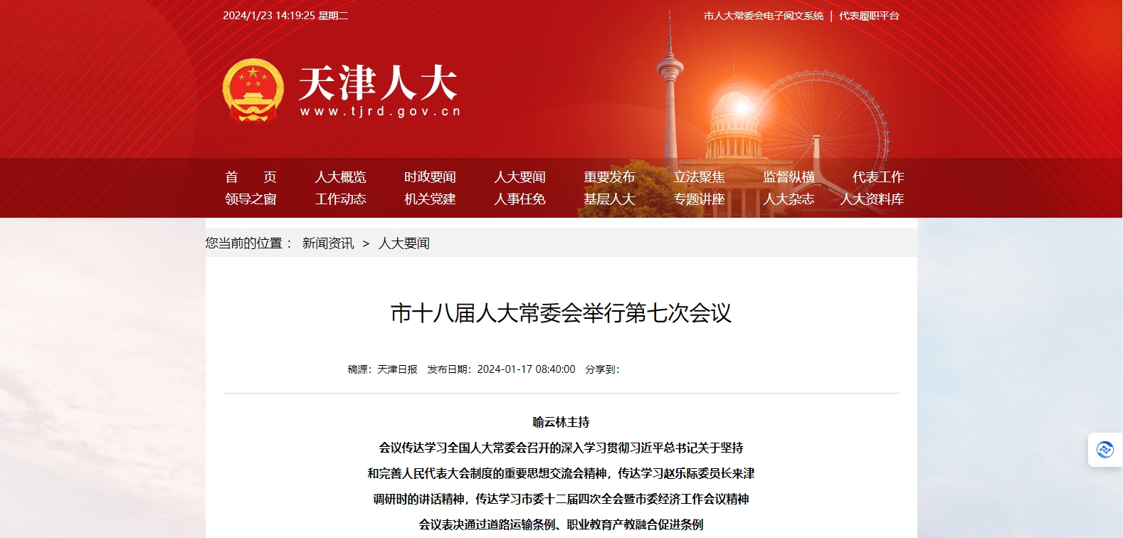 日前,天津市十八屆人大常委會第七次會議表決通過了《天津市職業(yè)教育產(chǎn)教融合促進條例》(下稱《條例》),這是全國首部有關職業(yè)教育產(chǎn)教融合的地方性法規(guī),自2024年3月1日起施行?!稐l例》的制定和施行,對于全面提高天津市職業(yè)教育質(zhì)量、擴大就業(yè)創(chuàng)業(yè)、推進經(jīng)濟轉(zhuǎn)型升級、實現(xiàn)高質(zhì)量發(fā)展必將產(chǎn)生重要作用。