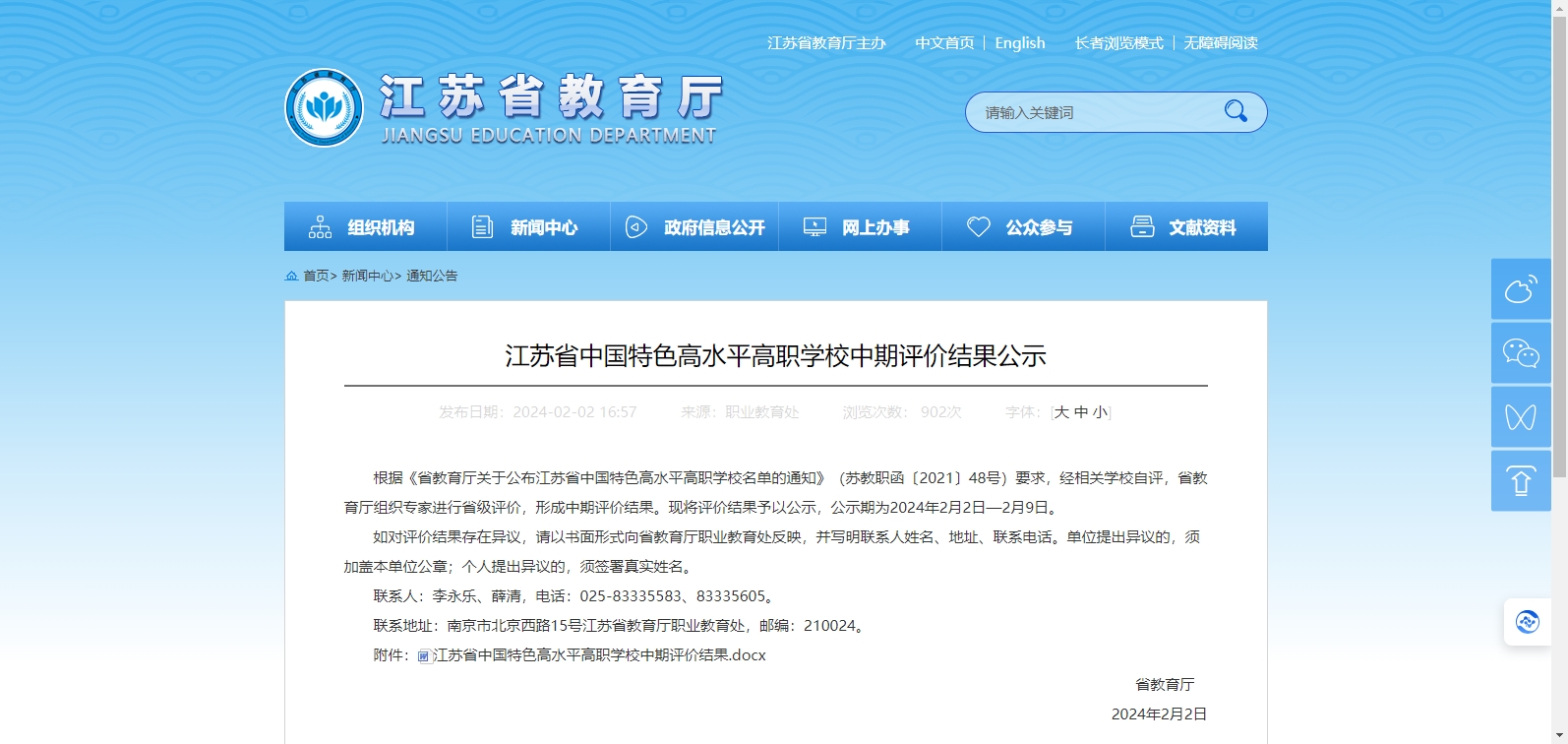 近日,江蘇省教育廳在其官方公布中國(guó)特色高水平高職學(xué)校中期評(píng)價(jià)結(jié)果公示,通知全文如下:
