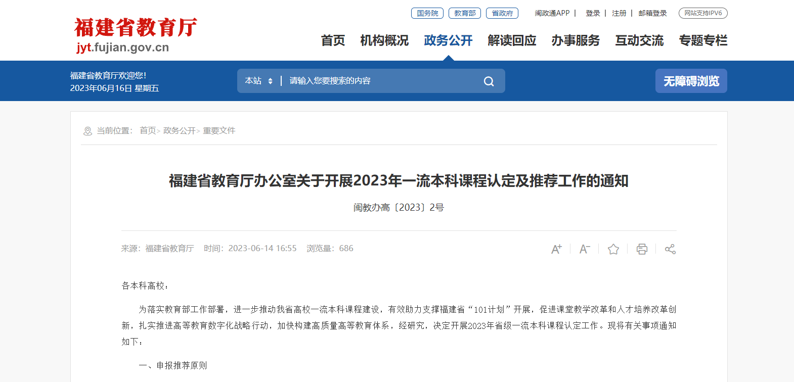6月14日,福建省教育廳辦公室發(fā)布閩教辦高〔2023〕2號《關(guān)于開(kāi)展2023年一流本科課程認定及推薦工作的通知》,其中,2023年省級一流本科課程推薦申報數為1045門(mén),其中線(xiàn)上、線(xiàn)上線(xiàn)下混合式和線(xiàn)下課程約741門(mén),虛擬仿真實(shí)驗教學(xué)課程177門(mén),社會(huì )實(shí)踐課程127門(mén)。