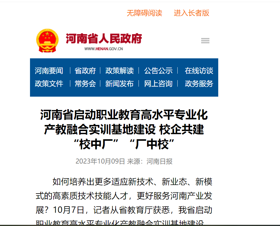 10月7日,記者從省教育廳獲悉,河南省啟動(dòng)職業(yè)教育高水平專(zhuān)業(yè)化產(chǎn)教融合實(shí)訓基地建設,以進(jìn)一步推動(dòng)學(xué)校人才培養與企業(yè)用人需求精準匹配,形成產(chǎn)教融合新生態(tài)。
