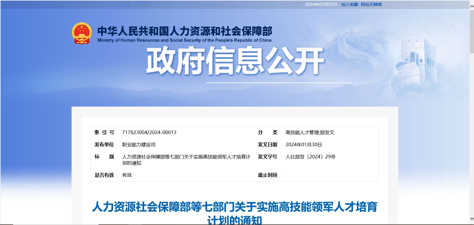 為貫徹落實(shí)黨的二十大關(guān)于加快建設國家戰略人才力量,努力培養造就更多大國工匠、高技能人才的戰略部署,進(jìn)一步擴大高技能人才數量規模,提升素質(zhì)水平,從2024年到2026年,聯(lián)合組織實(shí)施高技能領(lǐng)軍人才培育計劃。
